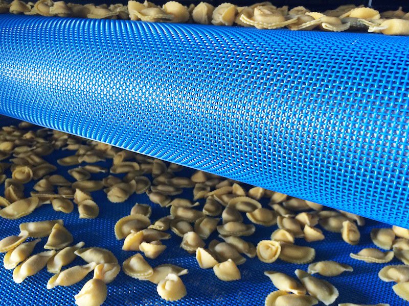 Progettato e realizzato totalmente in acciaio inox, è utilizzato generalmente dopo il trattamento di pastorizzazione della pasta fresca. Compito principale è asciugare superficialmente la pasta fresca e ridurne sensibilmente l’umidità interna, mantenendo la sua forma, lucentezza e colorazione. I vari sistemi di regolazione di cui è dotato permettono la massima versatilità ed impiego in tutti i settori della pasta fresca.